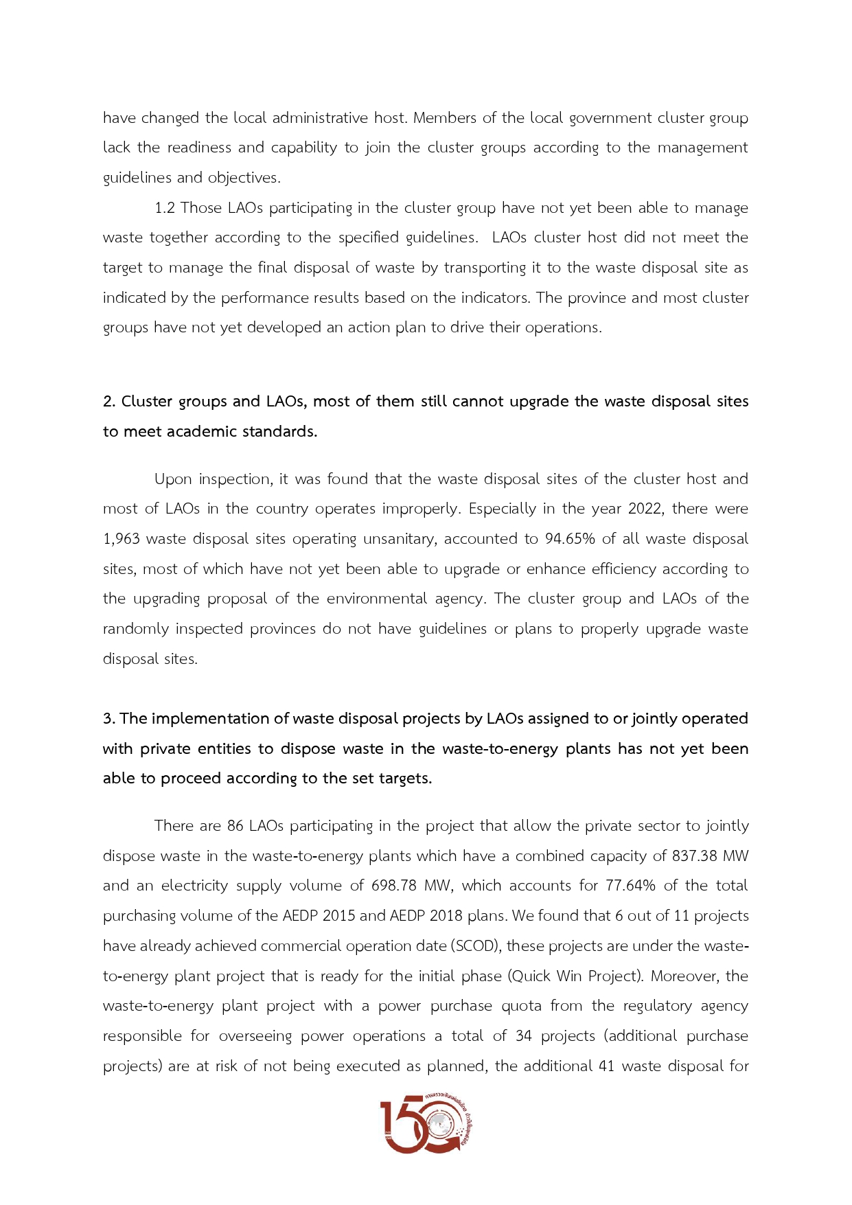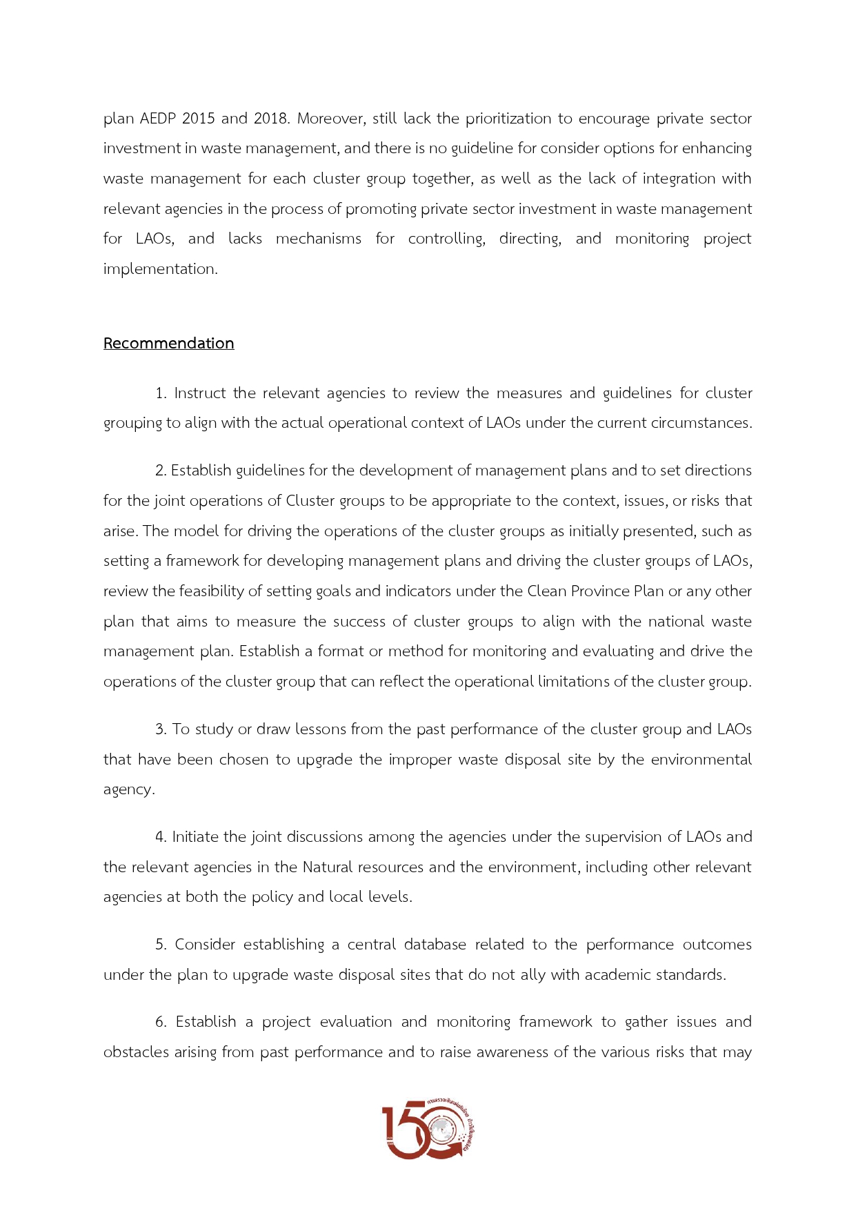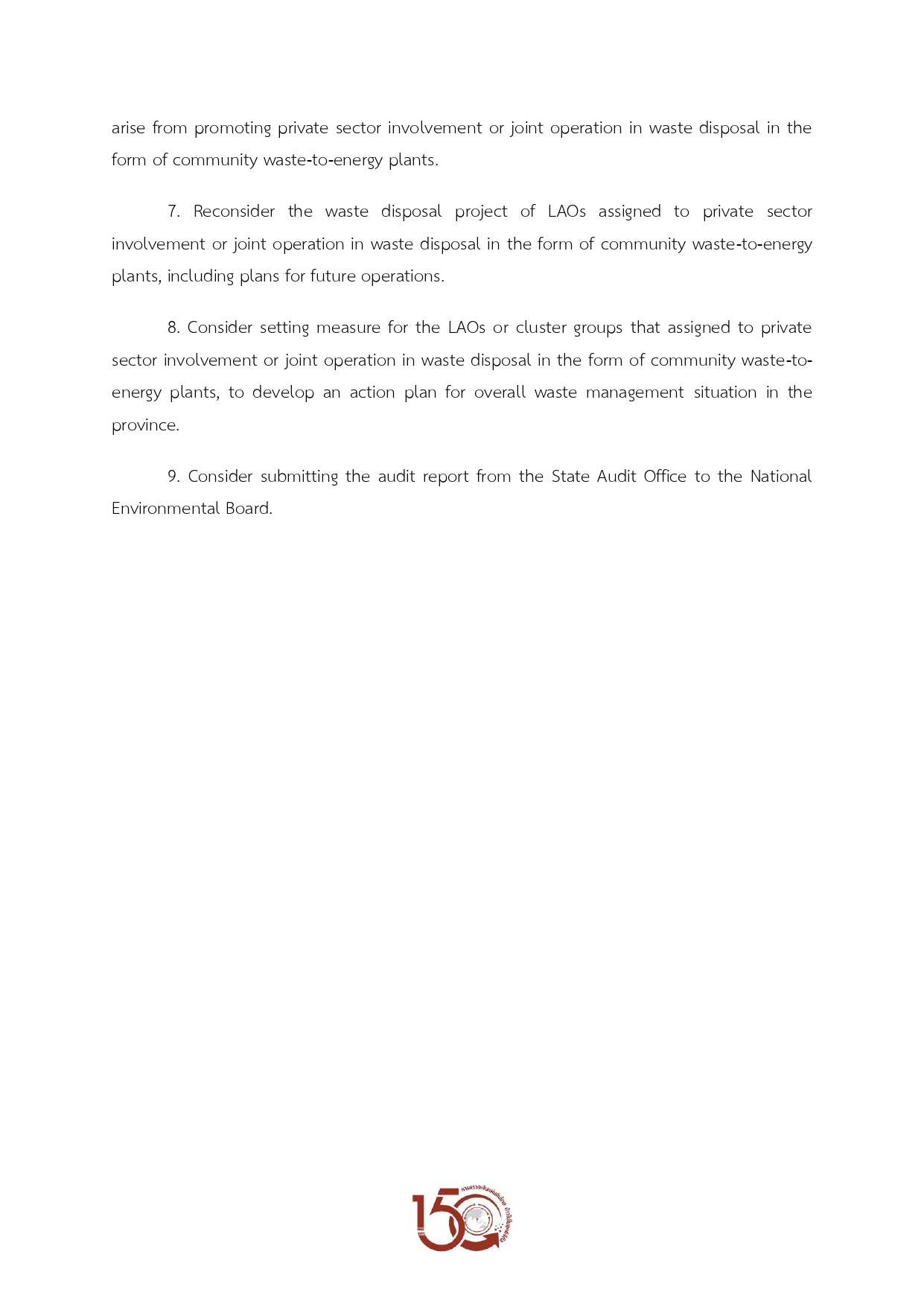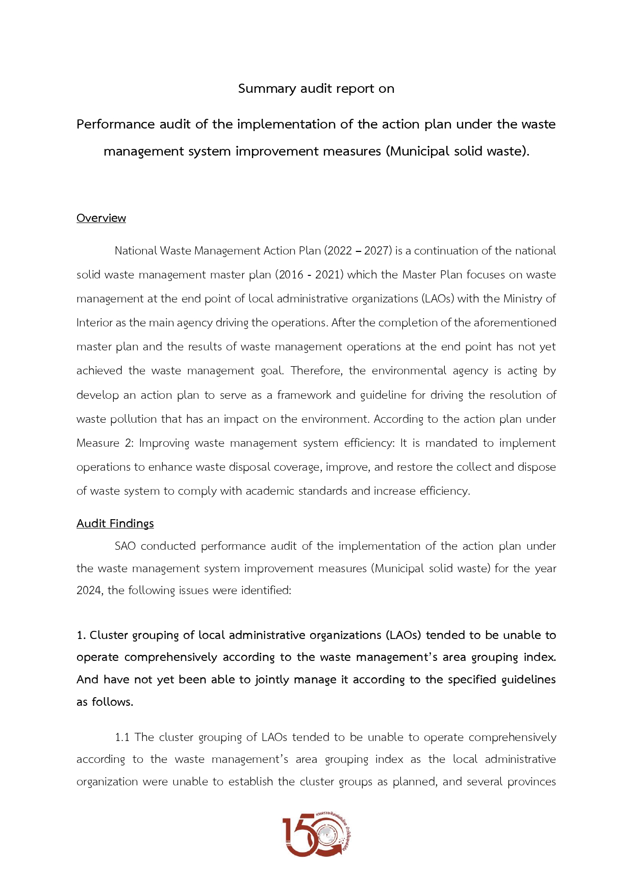 Summary audit report on Performance audit of the implementation of the action plan under the waste management system improvement measures (Municipal solid waste).