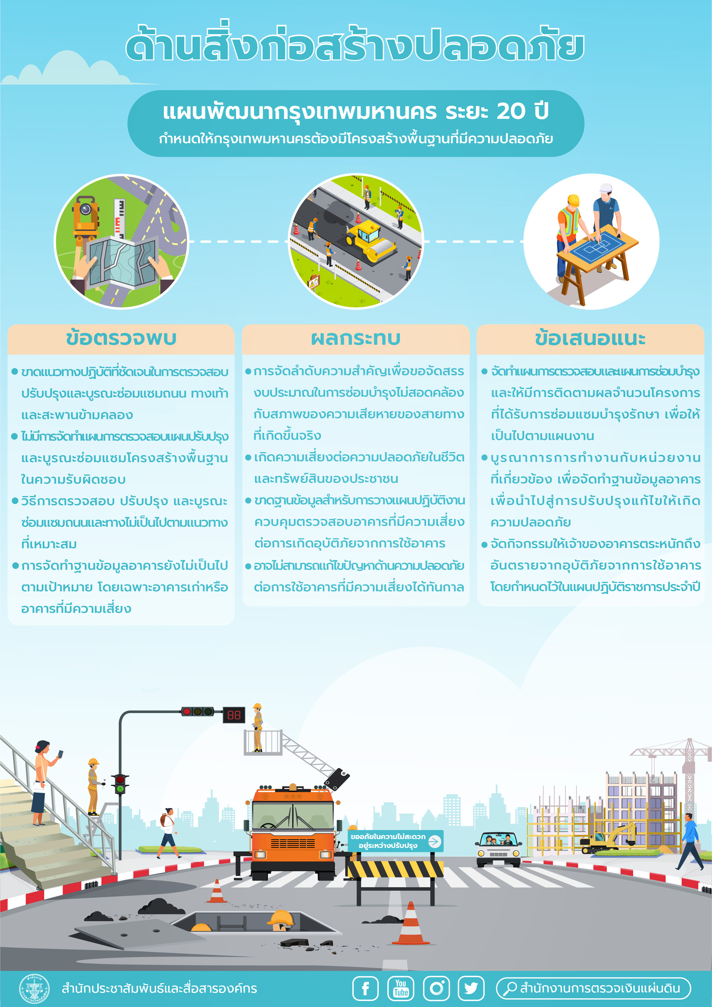 การตรวจสอบผลสัมฤทธิ์และประสิทธิภาพการดำเนินงานมหานครปลอดภัย ด้านปลอดอุบัติเหตุ ด้านปลอดภัยพิบัติ และด้านสิ่งก่อสร้างปลอดภัย