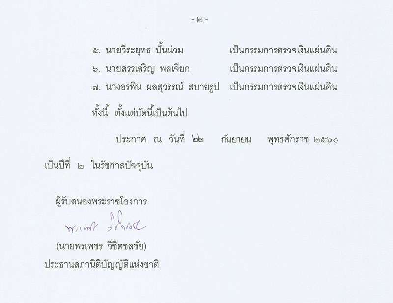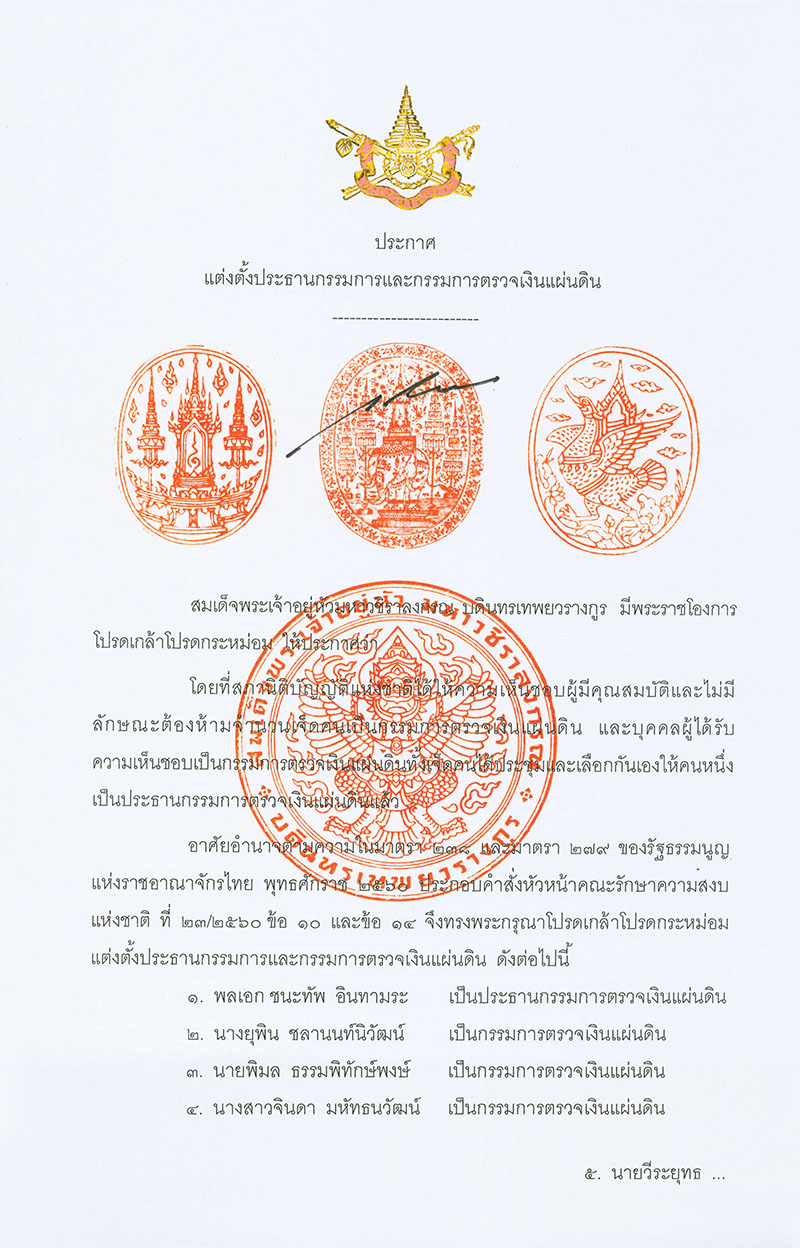 ประกาศ แต่งตั้งประธานกรรมการและกรรมการตรวจเงินแผ่นดิน