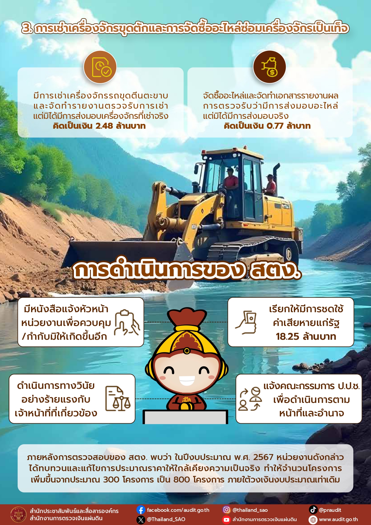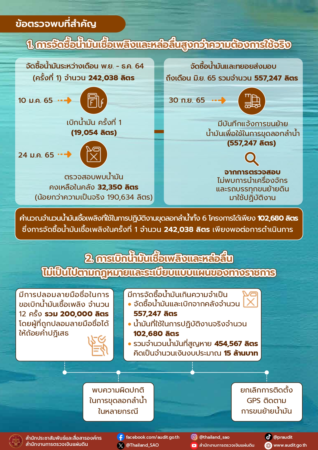 สตง.เผยผลสอบพฤติการณ์น่าเชื่อว่าทุจริต โครงการขุดลอกลำน้ำในพื้นที่จังหวัดภาคใต้ (จัดซื้อและเบิกน้ำมันเชื้อเพลิง)