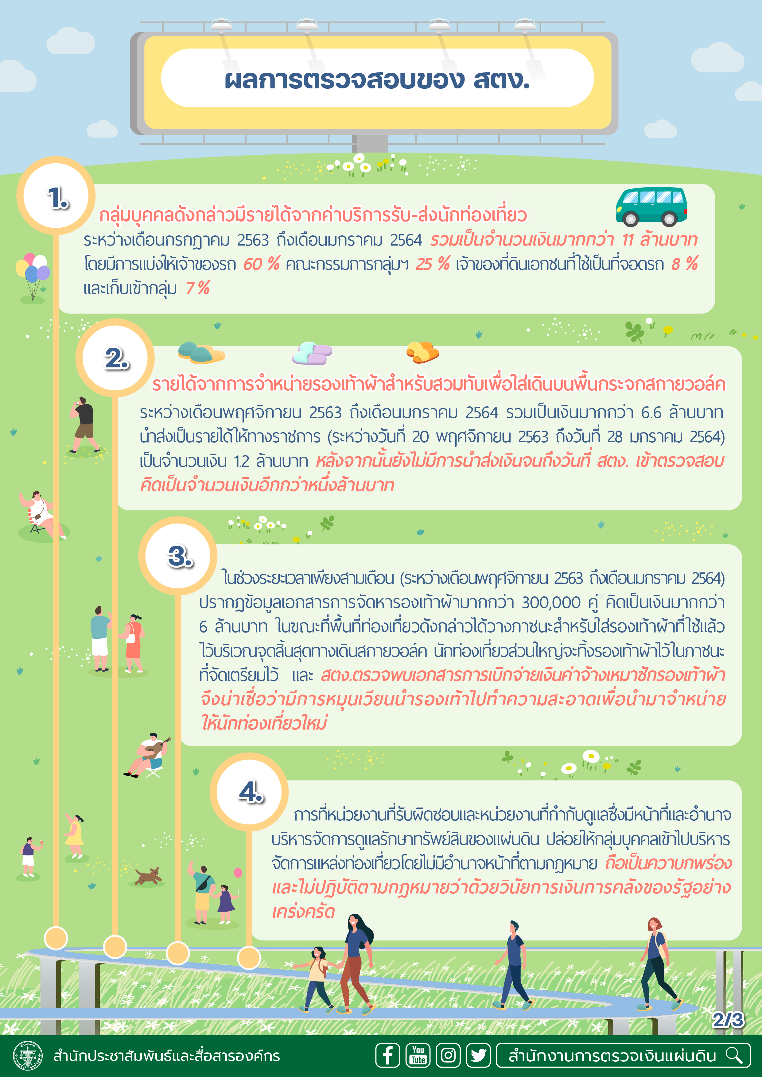 สตง. ตรวจสอบพร้อมให้ข้อเสนอแนะกรณีปัญหาการบริหารจัดการแหล่งท่องเที่ยวแห่งใหม่