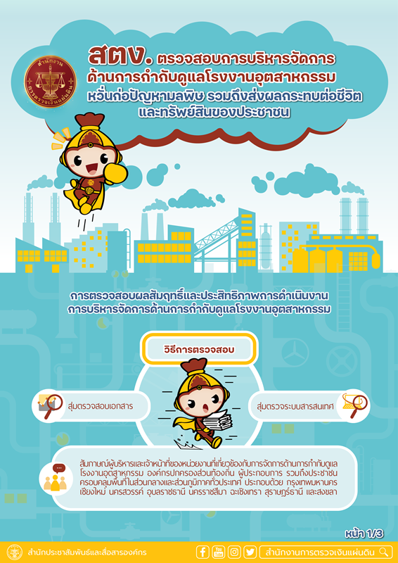 นายสุทธิพงษ์ บุญนิธิ รองผู้ว่าการตรวจเงินแผ่นดิน ในฐานะโฆษกสำนักงานการตรวจเงินแผ่นดิน เปิดเผยว่า ภาคอุตสาหกรรมเป็นภาคส่วนที่มีความสำคัญในการขับเคลื่อนเศรษฐกิจของประเทศ โดยมีโรงงานอุตสาหกรรมเป็นกลไกของห่วงโซ่การผลิตเพื่อเพิ่มมูลค่าวัตถุดิบให้สูงขึ้น ลดการพึ่งพาการนำเข้าสินค้า และเพิ่มขีดความสามารถการส่งออกสินค้าไปต่างประเทศ ซึ่งปัจจุบันประเทศไทยมีโรงงานอุตสาหกรรมเพิ่มขึ้นอย่างต่อเนื่องทุกปี โดย ณ สิ้นปี พ.ศ. 2565 มีโรงงานอุตสาหกรรมรวมทั้งสิ้น 73,232 แห่ง หากภาครัฐขาดการวางแผนและการบริหารจัดการที่ดี อาจส่งผลให้เกิดมลพิษทางอากาศ มลพิษทางน้ำ มลพิษทางดิน มลพิษทางเสียง ตลอดจนความเสียหายต่อชีวิตและทรัพย์สินของประชาชนจากอุบัติเหตุในโรงงาน อัคคีภัย และสารเคมีรั่วไหล สำนักงานการตรวจเงินแผ่นดิน (สตง.) ภายใต้นโยบายการตรวจเงินแผ่นดินของคณะกรรมการตรวจเงินแผ่นดินตระหนักถึงความสำคัญในเรื่องดังกล่าว จึงได้เข้าตรวจสอบผลสัมฤทธิ์และประสิทธิภาพการดำเนินงานการบริหารจัดการด้านการกำกับดูแลโรงงานอุตสาหกรรม ในปี พ.ศ. 2563-2565 โดยสุ่มตรวจสอบเอกสาร ระบบสารสนเทศ และสัมภาษณ์ผู้บริหารและเจ้าหน้าที่ของหน่วยงานที่เกี่ยวข้องกับการจัดการด้านการกำกับดูแลโรงงานอุตสาหกรรม องค์กรปกครองส่วนท้องถิ่น ผู้ประกอบการ รวมถึงประชาชน ครอบคลุมพื้นที่ในส่วนกลางและส่วนภูมิภาคทั่วประเทศ ประกอบด้วย กรุงเทพมหานคร เชียงใหม่ นครสวรรค์ อุบลราชธานี นครราชสีมา ฉะเชิงเทรา สุราษฎร์ธานี และสงขลา