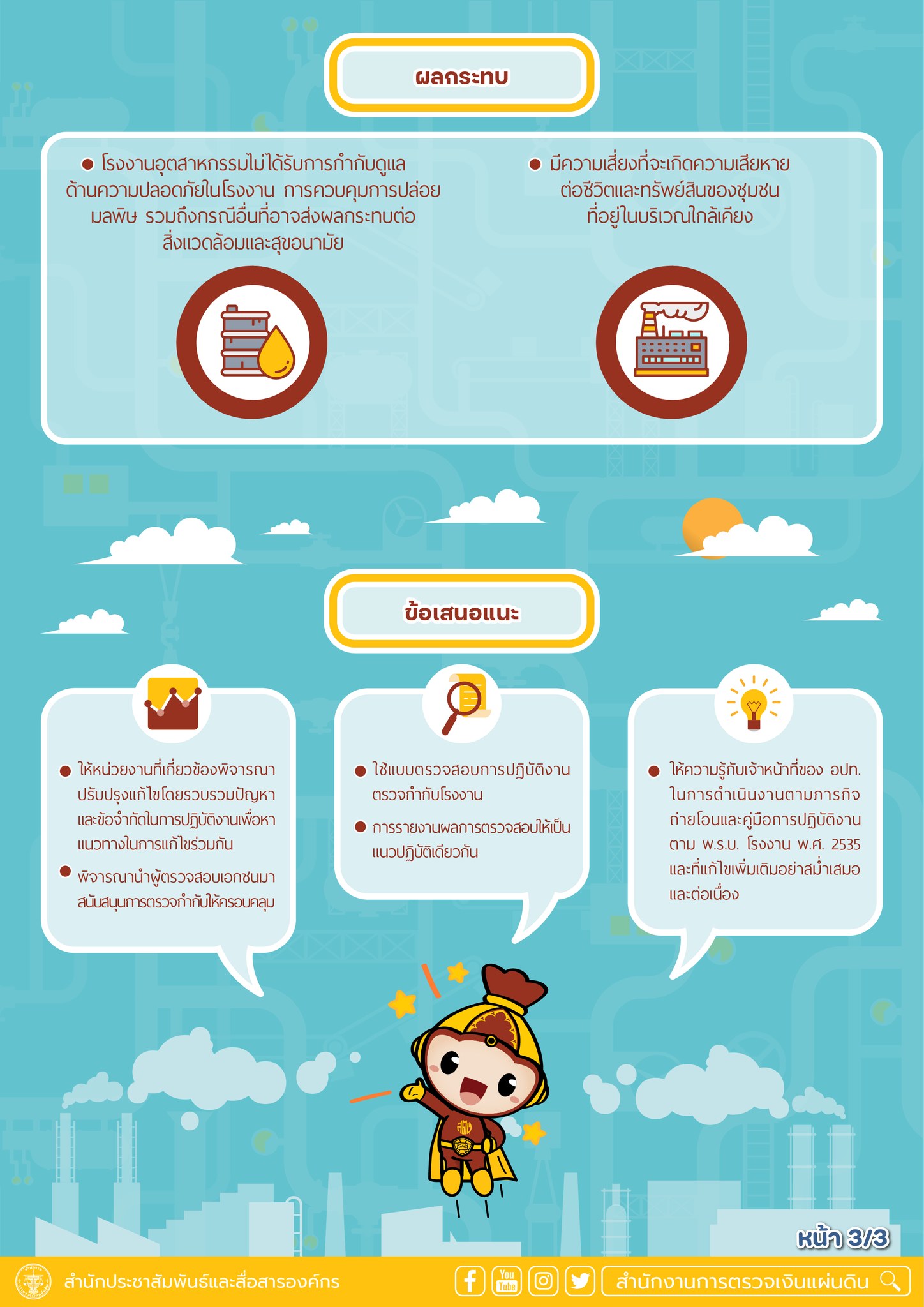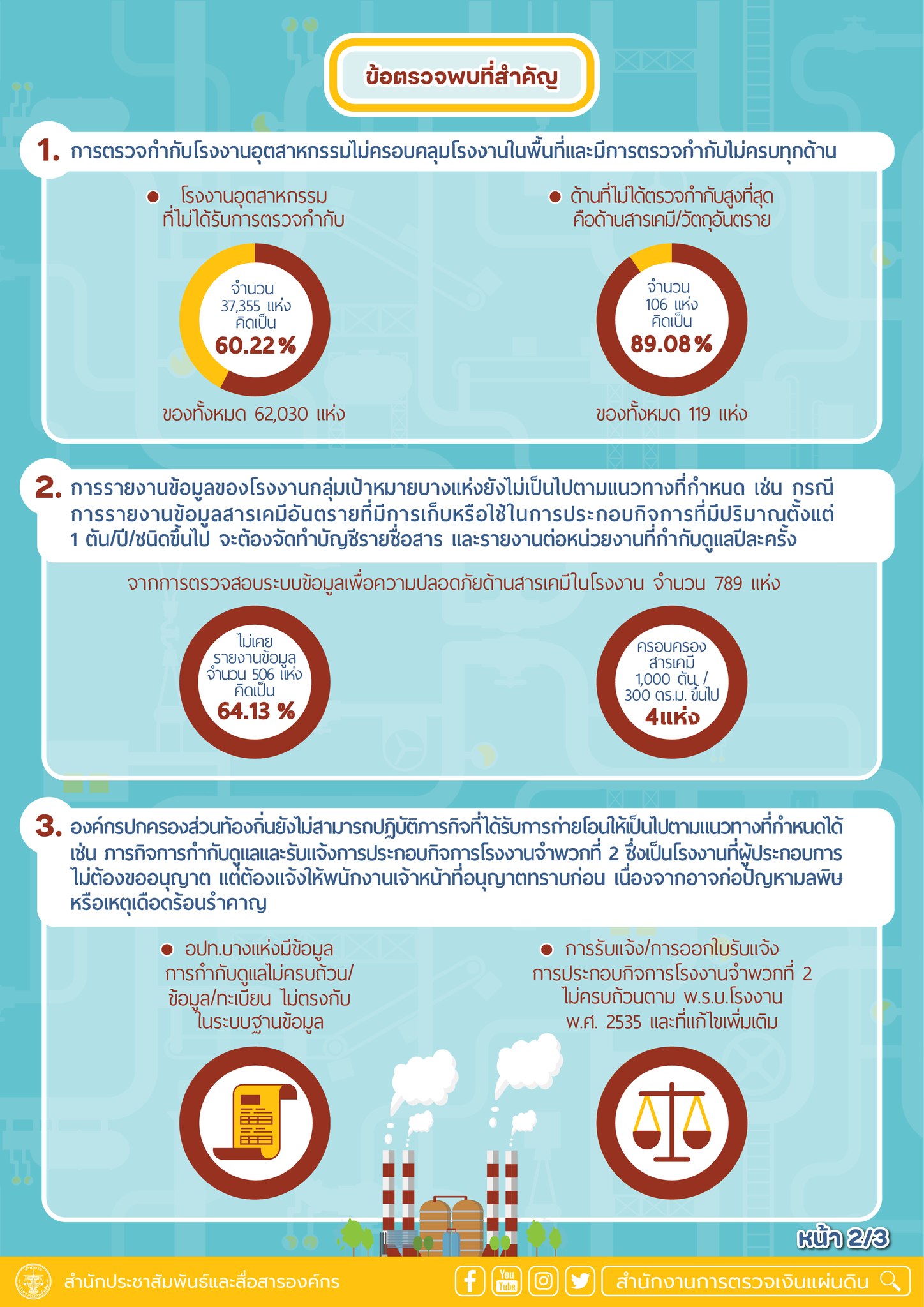สตง. รุดตรวจสอบ การบริหารจัดการด้านการกำกับดูแลโรงงานอุตสาหกรรม หวั่นก่อปัญหามลพิษ รวมถึงส่งผลกระทบต่อชีวิตและทรัพย์สินของประชาช