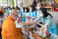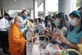 2563-08-11 พิธีทำบุญตักบาตรข้าวสารอาหารแห้ง คณะสงฆ์จำนวน 9 รูป จากวัดเทพธิดารามวรวิหาร พระอารามหลวง เพื่อน้อมถวายเป็นพระราชกุศลและถวายพระพรชัย มงคลแด่สมเด็จพระนางเจ้าสิริกิติ์ พระบรมราชินีนาถ พระบรมราชชนนีพันปีหลวง เนื่องในโอกาสมหามงคลเฉลิมพระชนมพรรษา 88
