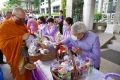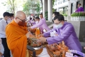 2564-04-02 พิธีทำบุญตักบาตรข้าวสารอาหารแห้ง คณะสงฆ์จากวัดเทพธิดารามวรวิหาร พระอารามหลวง เพื่อน้อมถวายเป็นพระราชกุศลและถวายพระพรชัยมงคลแด่สมเด็จพระกนิษฐาธิราชเจ้า กรมสมเด็จพระเทพรัตนราชสุดา ฯ สยามบรมราชกุมารี