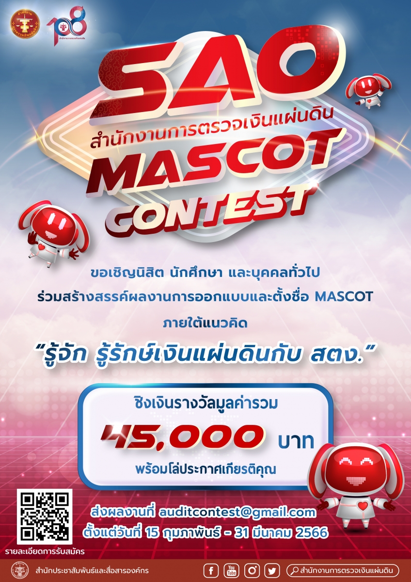 - หลักเกณฑ์การประกวดออกแบบการ์ตูนสัญลักษณ์สำนักงานการตรวจเงินแผ่นดิน (SAO Mascot Contest)
